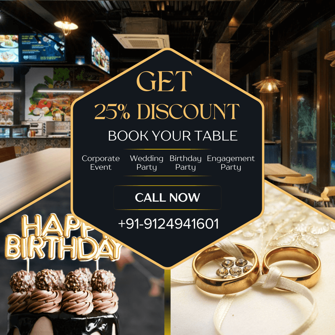 Consisting of Rice, Chapati -2 pcs, Murgh makhani, Mix Veg, Salad, Papad, Pickle and Sweet.
